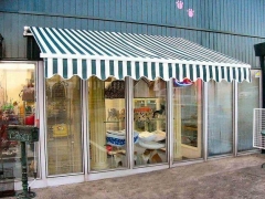 伸缩式遮阳篷适用在阳台,露台,庭院,商业街等场所,按样式可分为开放曲臂式、半罩式曲臂和全罩式曲臂,按操作方式可分为手动、线控、无线遥控、风光控以及雨控。